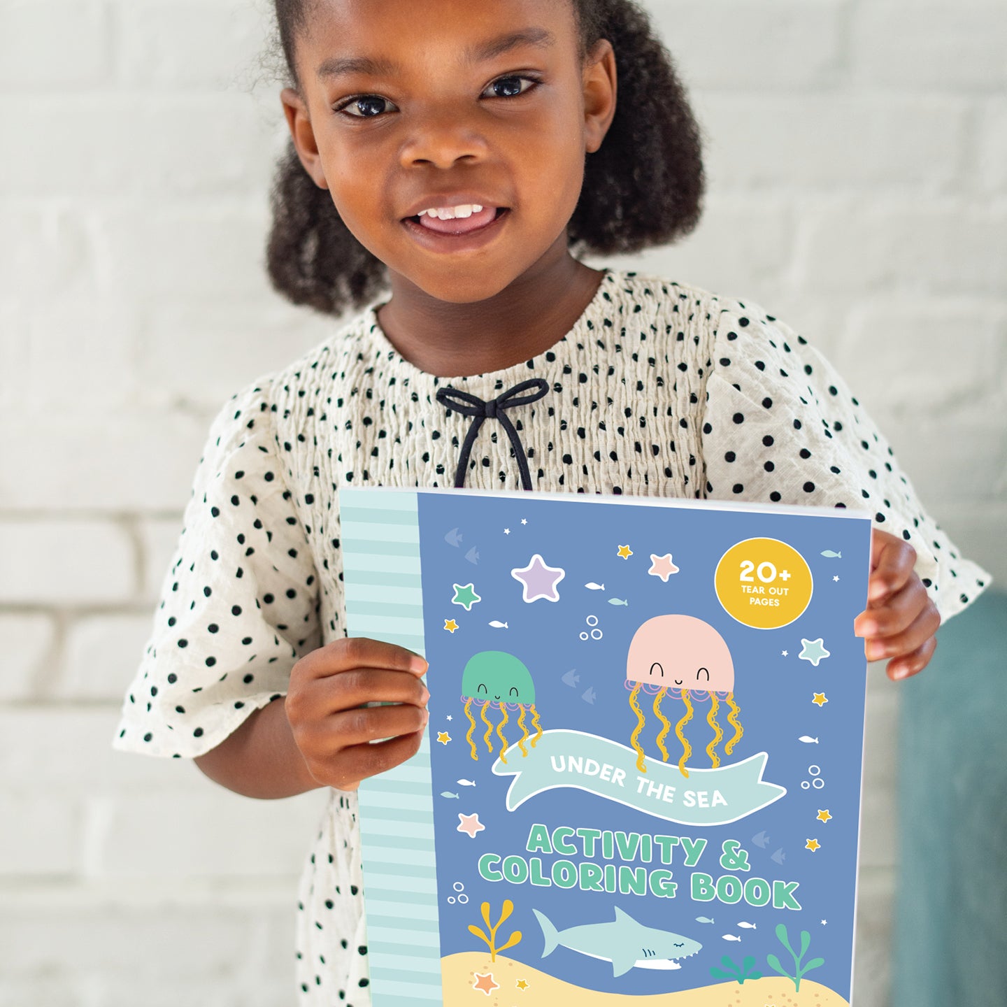 This activity book dives deep into creativity with over 20 engaging activities and crafts, all with an under-the-sea theme. From puzzles and games to pretend play, it’s designed to spark imagination while building key early learning skills. Perforated pages make sharing and play easy, and the cutout elements let kids set up their very own aquarium!
