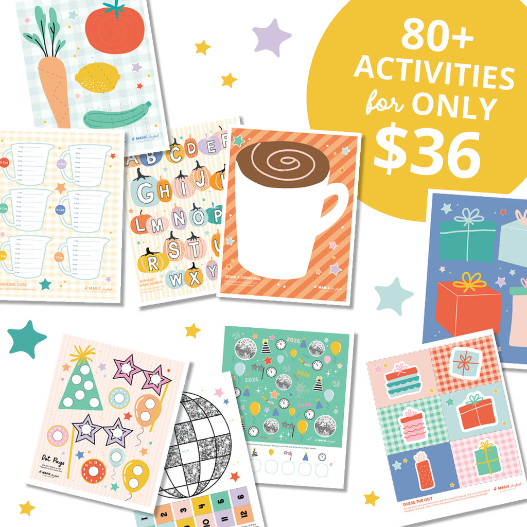 Celebrate the season with creativity and connection! The Holiday Digital Bundle gives you instant access to all 4 months of Magic Playbook holiday content in one easy-to-download file—packed with over 80 activity pages designed for kids and families.