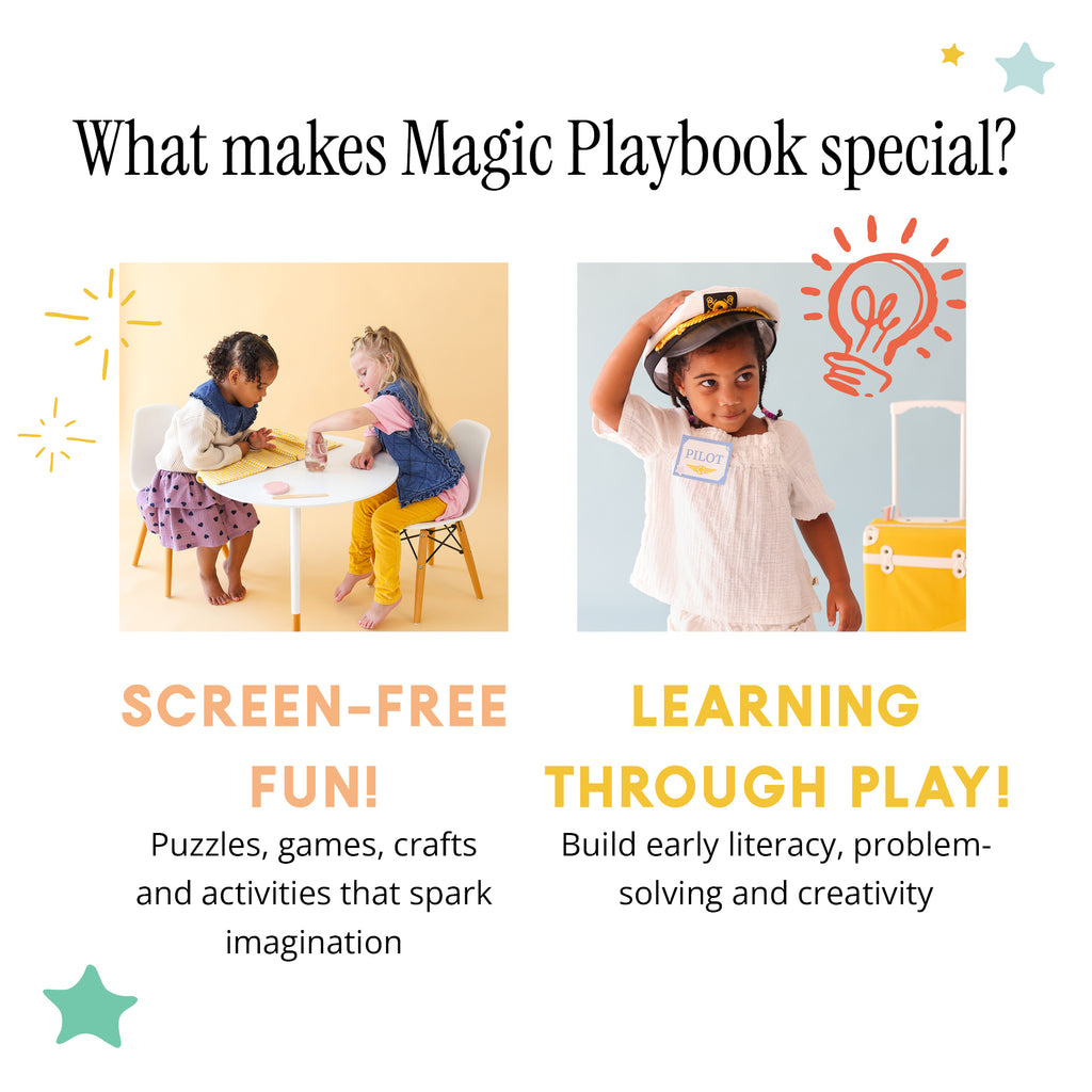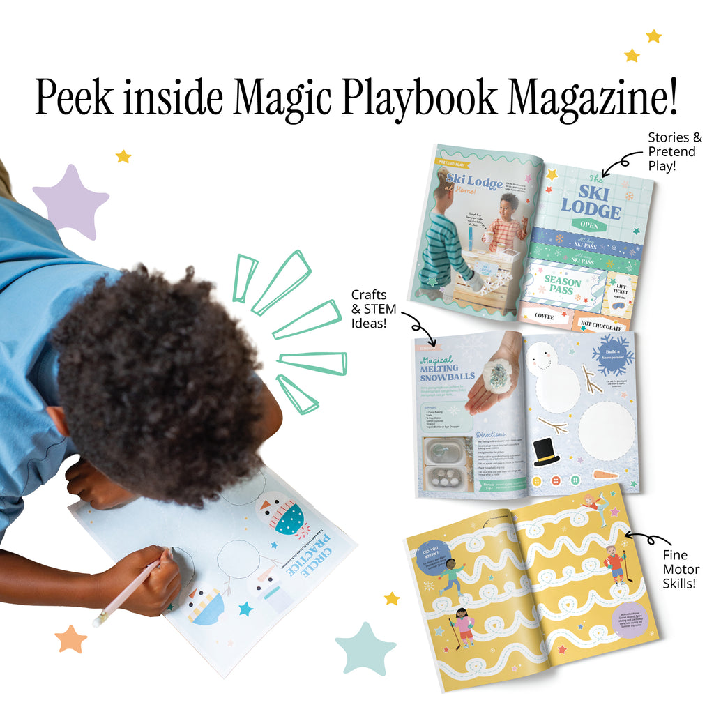 Yes! Every subscription includes access to a digital version of the magazine. This makes it easy to print extra copies of activity pages if your kids want to do them again (or if siblings don’t want to share 😉). That said, we’ve designed Magic Playbook Magazine to really shine in its printed format—kids will be cutting, gluing, coloring, and crafting their way through each issue, and we think the hands-on experience is part of the magic.